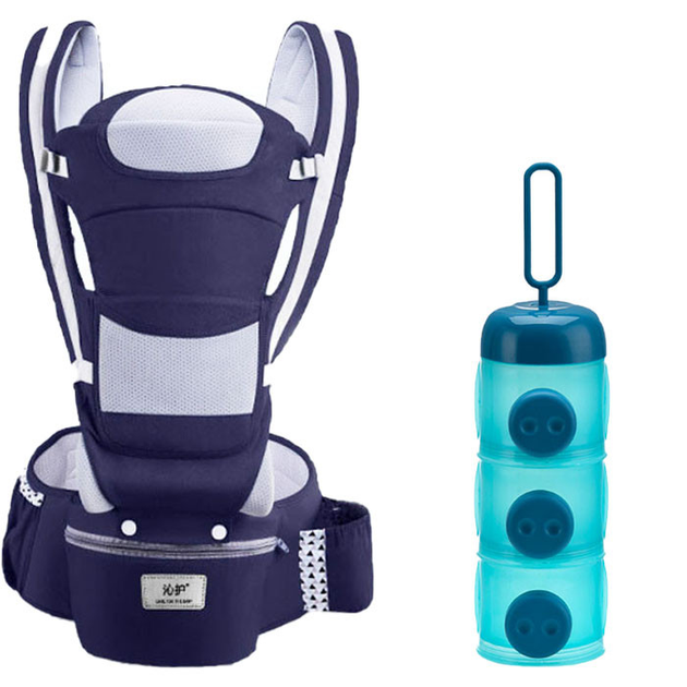 Хипсит, Ерго-рюкзак кенгуру переноска Baby Carrier 6 в 1 Синій і Контейнер для дитячих сумішей (vol-1397)
