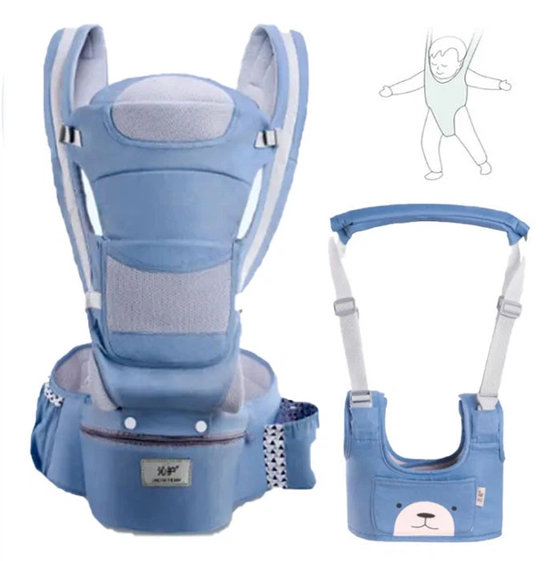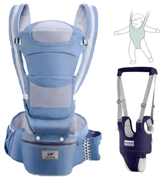 Хіпсіт, Ерго-рукзак, кенгуру перенесення 6 в 1 Джинсовий і Вожжі-ходунки з підкладками і трусиками (vol-8977)