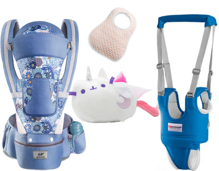 Хипсит, Ерго-рюкзак кенгуру переноска 6 в 1, Віжки-ходунки, слюнявчик та Пушина Кет Місячний єдиноріг (vol-1876)