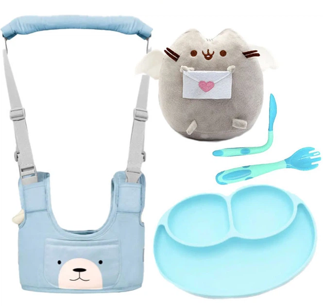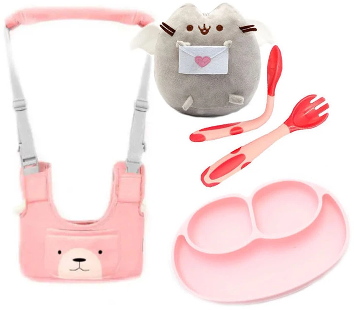 Набір дитячих вождь-ходунки з підкладками, силіконова ложка-вилка з тарілкою і Пуши кэт з листами (n-1980)