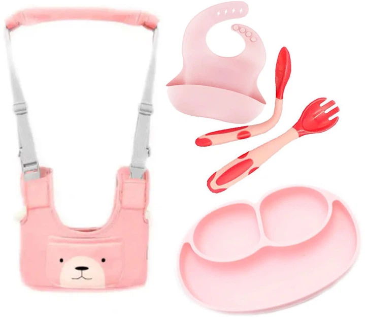 Набір дитячих вождь-ходунки з підкладками, силіконова ложка-вилка з тарілкою і дитячий ніблер (n-1983)