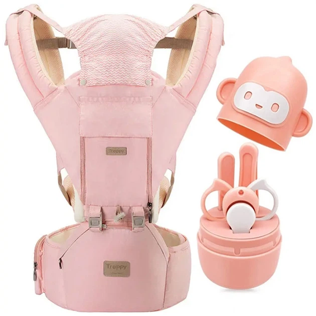 Хіпсит Ерго-рюкзак Treppy 12в1 з сіткою та Манікюрний набір з 5 предметів у футлярі Мавпянка Рожевий n-13141