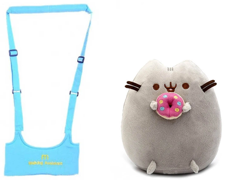 Набір віжки-ходунки Walking Assistant Блакитний та М'яка іграшка Пушин кет з пончиком VOLRO (vol-1136)