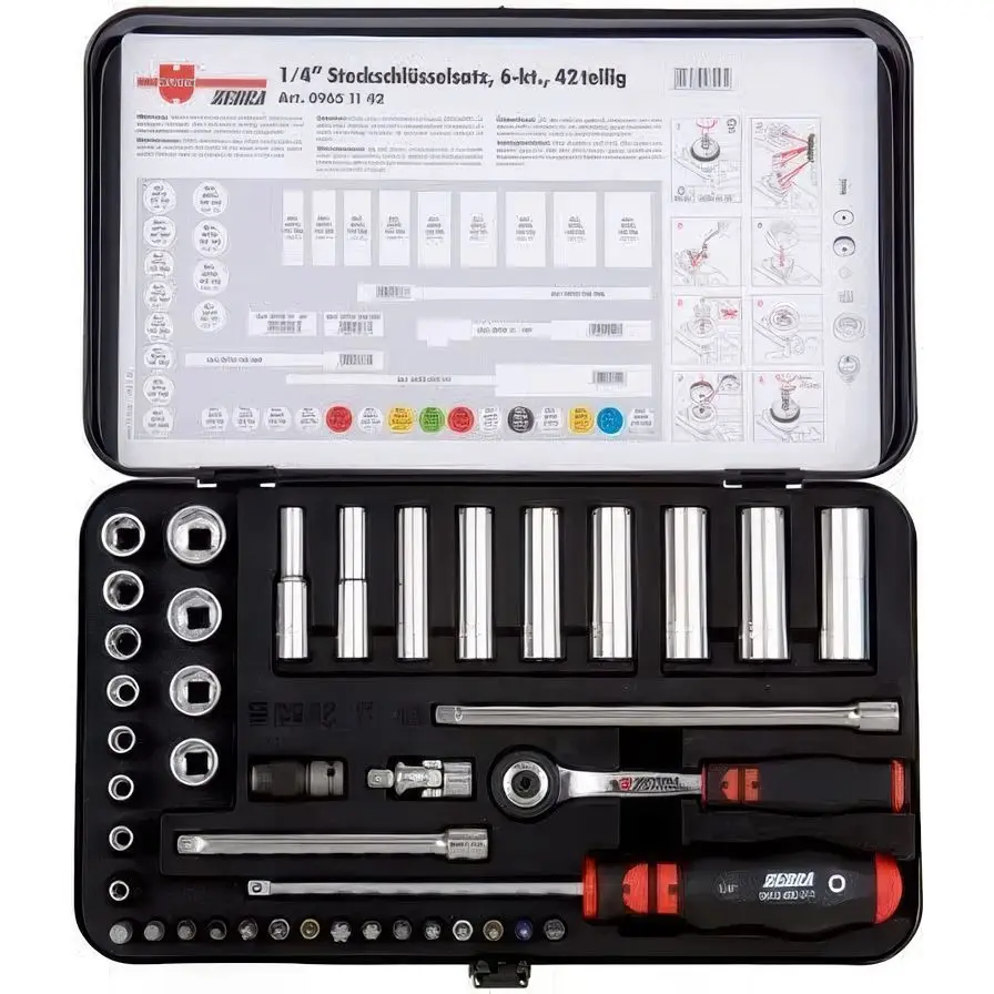 Набір головок торцевих Wurth 1/4" з тріскачкою в кейсі 42 шт. Zebra (096511 42)