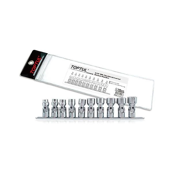 Набір голівок 12-гр. з карданом 3/8" 10од. 10~19мм (на планці) TOPTUL GAAG1004
