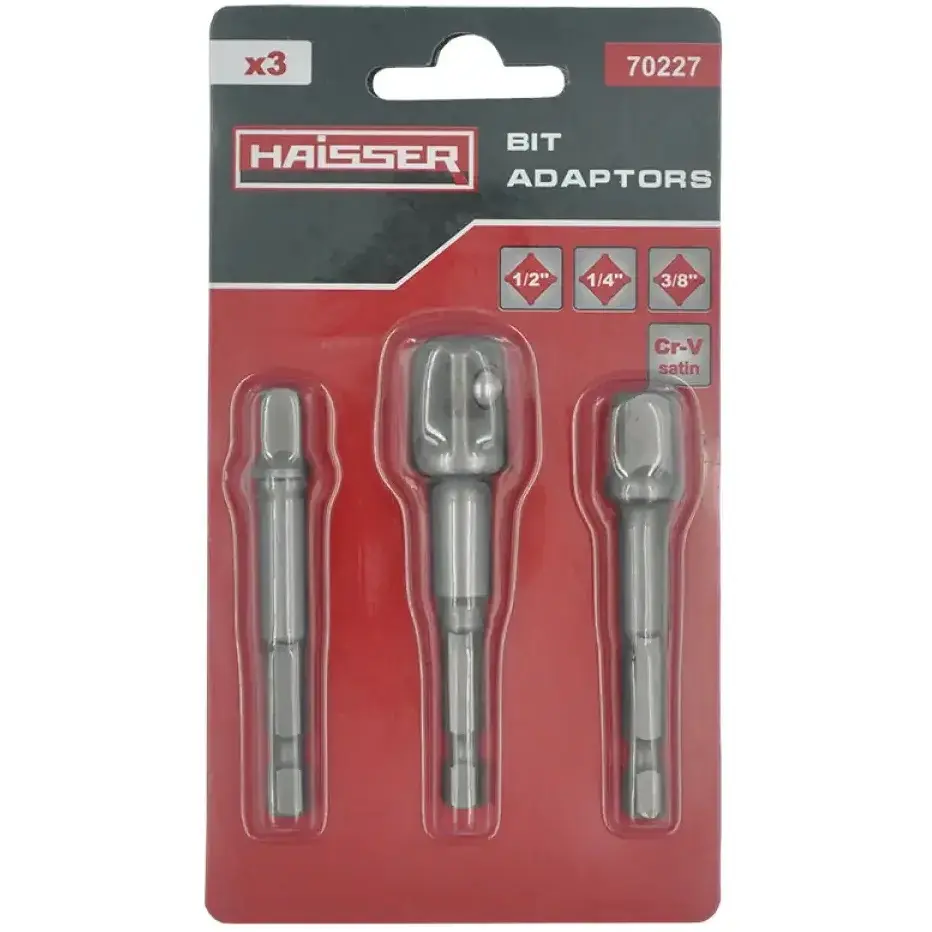 Набір перехідників Haisser для торцевих головок 1/4", 3/8", 1/2" 3 шт. (128613)