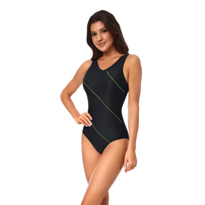 + 76 балів ITbox, Розмір - 54, Тип - суцільний, Тип бюстгальтера - soft cup, Тип плавок - сліп (класичні), Дизайн - однотонний, смужка, Особливості - захист від ультрафіолету UPF 50+, із стійкої до хлору та морської води тканини, еластичний матеріал, стійкість до утворення ковтунців і стирання, не просвічує, стійкість до ультрахлору, Застібка - без застібки, чорний, зелений