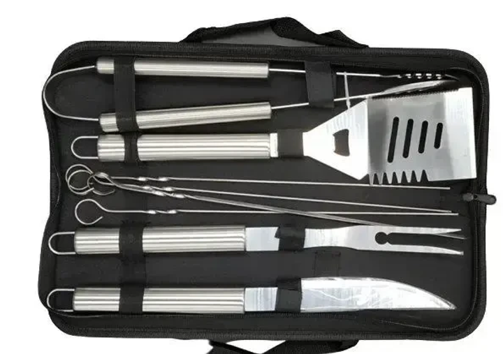 Набір для барбекю та гриля з нержавіючої сталі, сумка чохол на блискавці 20 предметів