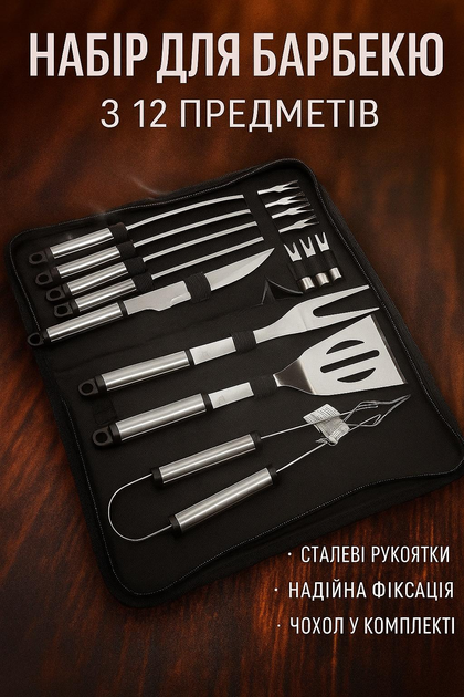 Набір для барбекю з 12 предметів у металевій валізі з нержавіючої сталі, довжиною інструментів 41 см, стильний кейс для грил