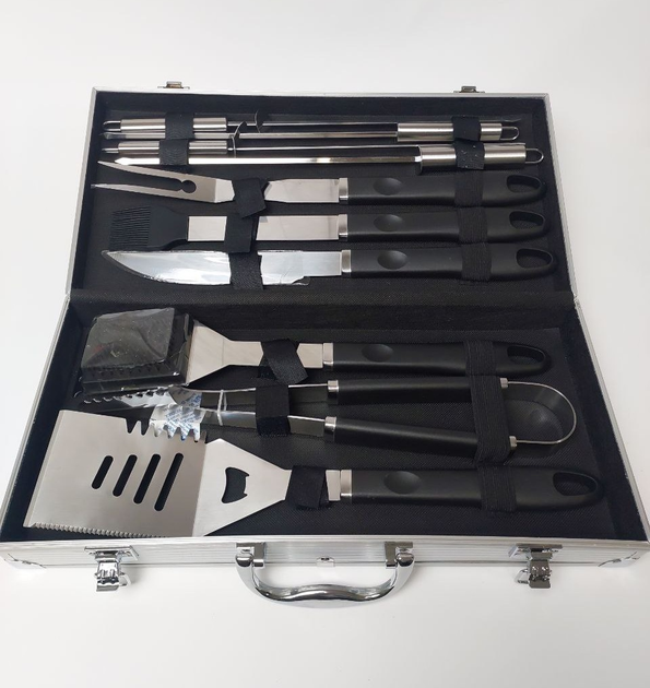 Набір для мангалу BBQ Tools Set AL-18 18 предметів приладдя для барбекю в алюмінієвому кейсі 43х21х8 см Сріблястий (12516)