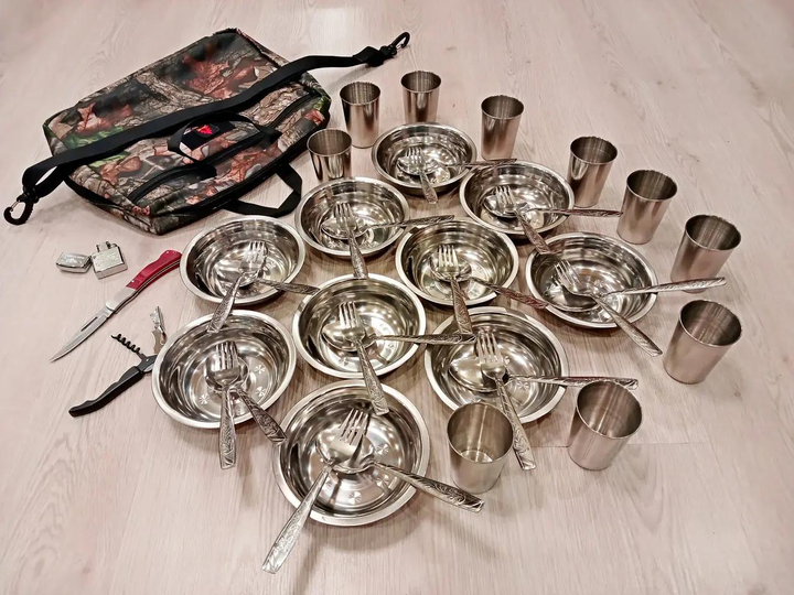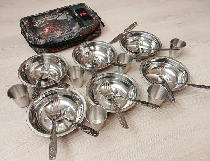 Набір туристичного посуду з неіржавкої сталі в переносній сумці " Турист-6"