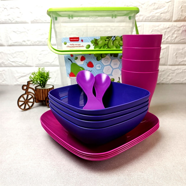 Набір пластикового посуду для пікніка на 4 персони 16 предметів фіолетовий