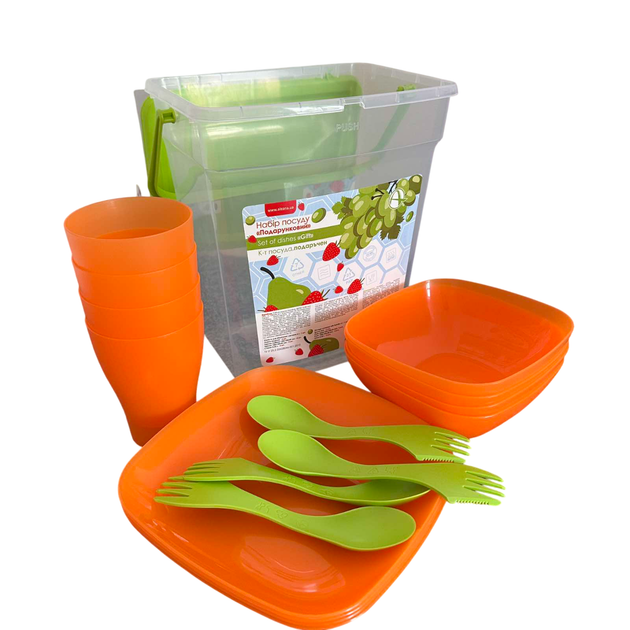 Набір посуду для пікніка Алеана на 4 персони оранджевий прозорий