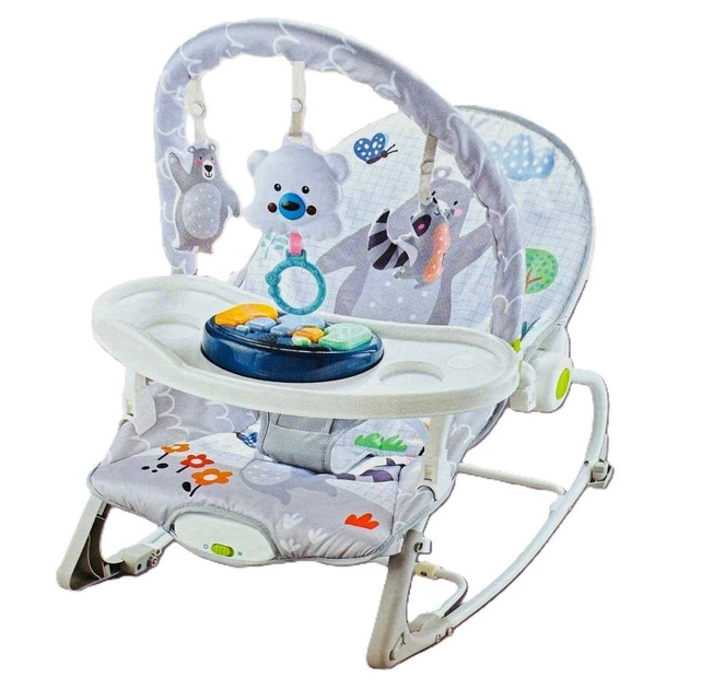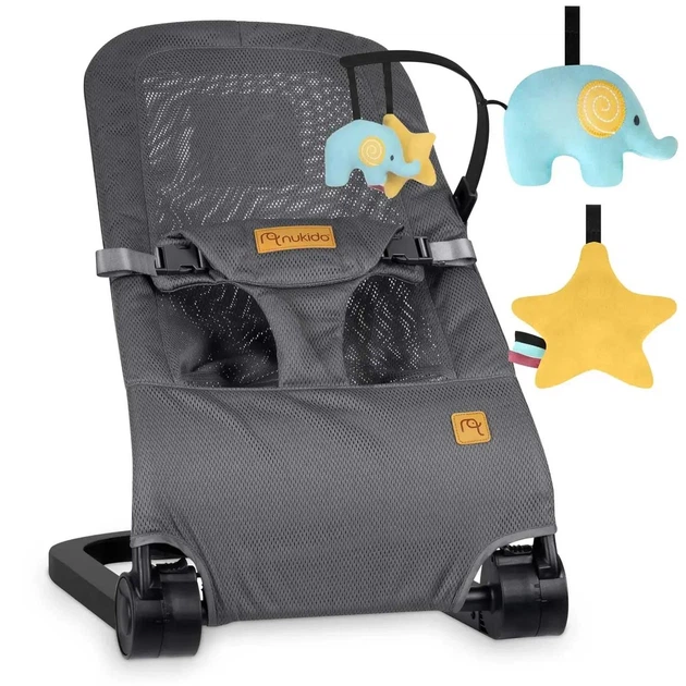 Дитячий шезлонг-качалка Nukido з дугою, іграшками та регульованою спинкою, сірий, Польща