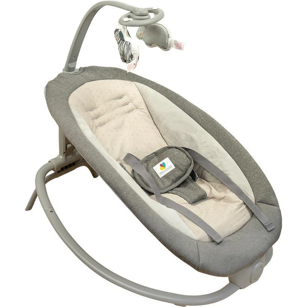 Дитячий шезлонг-качалка Nukido з іграшками, світло-сірий, Польща, з регульованою спинкою та знімною дугою