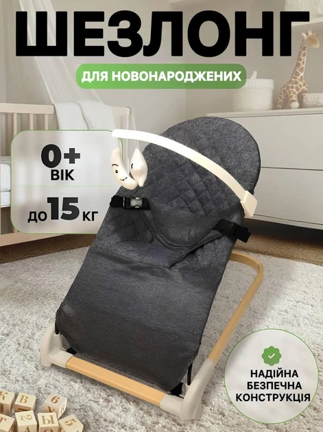 Дитячий шезлонг заколисуючий центр для новонароджених дітей дитяче крісло гойдалки крісла сірий до 15 кг