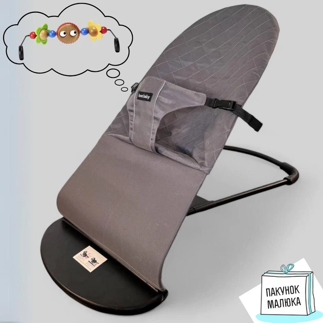 Шезлонг дитячий сірий Love Baby крісло гойдалка і заколисуючий центр для немовлят