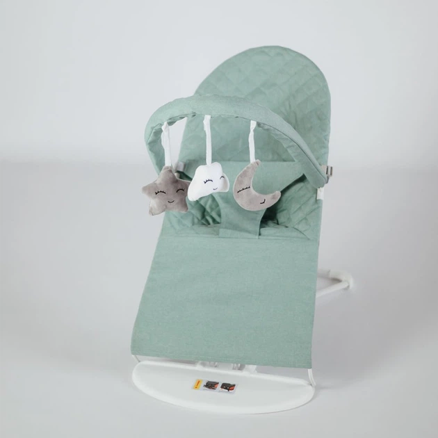 Шезлонг дитячий Love Baby м’ятний крісло гойдалка та заколисуючий центр