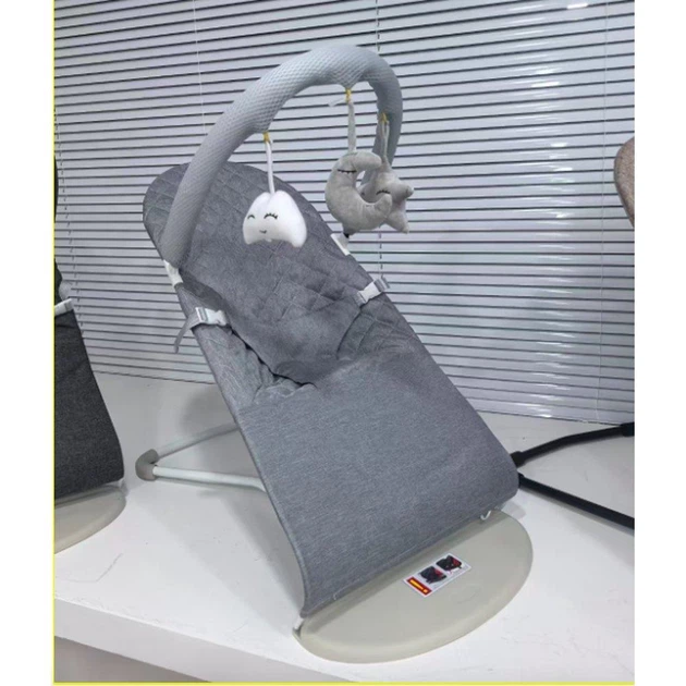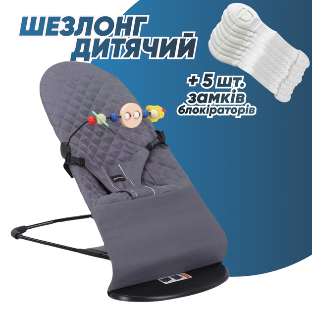 Шезлонг дитячий від народження Дитячий шезлонг дитяча гойдалка для немовлят шезлонг сірий качалка + дуга з іграшками