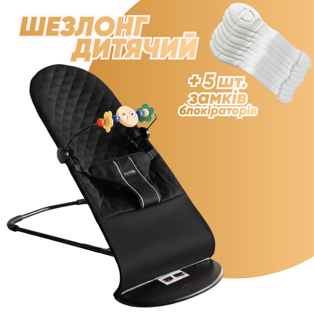 Шезлонг дитячий від народження Дитячий шезлонг дитяча гойдалка для немовлят шезлонг чорний качалка + дуга з іграшками