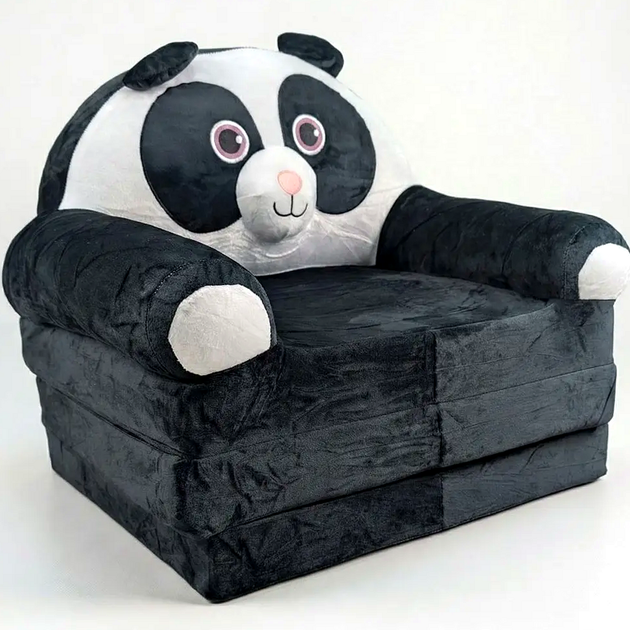 М'яке крісло трансформер Панда 3 в 1 50х48х40 см розкладне з іграшкою та спальним місцем з велюру