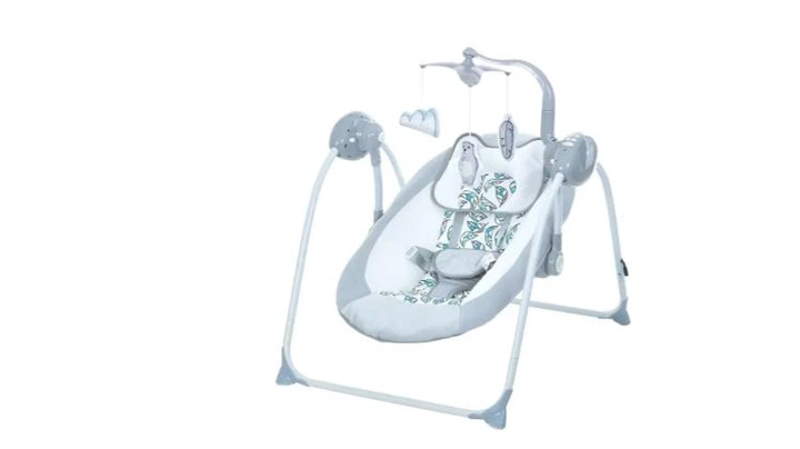 Гойдалка ME 1075 TEDDY Gray Mint Feathers – пульт, 5 швидкостей, таймер, 12 мелодій, 2 положення спинки, сірий