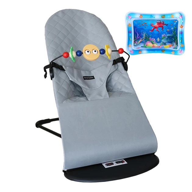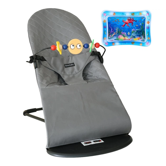 Детское кресло-шезлонг Love Baby с дугой + развивающий коврик Світло-сірий