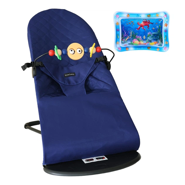 Детское кресло-шезлонг Love Baby с дугой + развивающий коврик Темно-синій