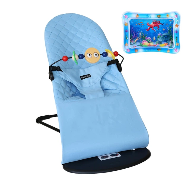 Детское кресло-шезлонг Love Baby с дугой + развивающий коврик Блакитний