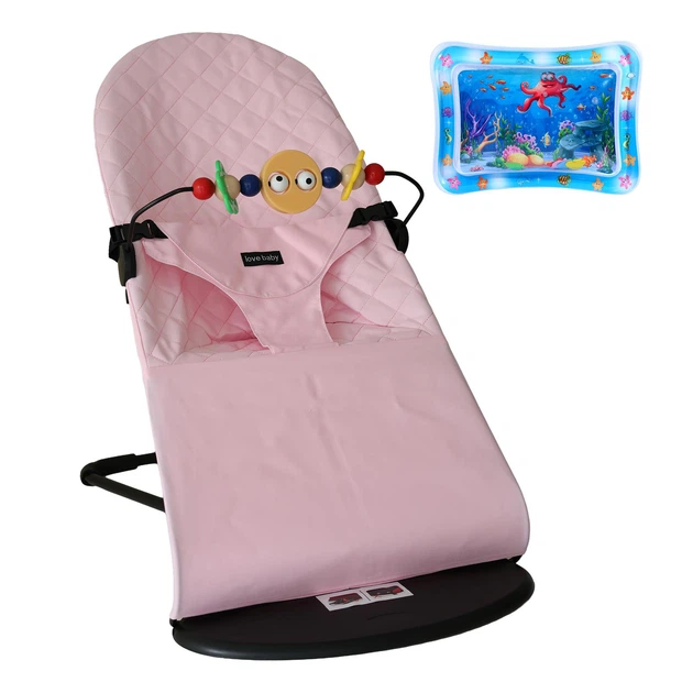 Детское кресло-шезлонг Love Baby с дугой + развивающий коврик Рожевий