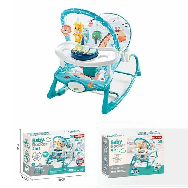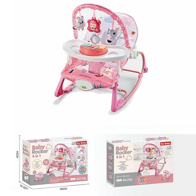 Шезлонг 69869 B 4в1, мелодії, вібрація, дуга з підвісками, ноти, знімне піаніно, пискавки, на батарейках, регулювання положе