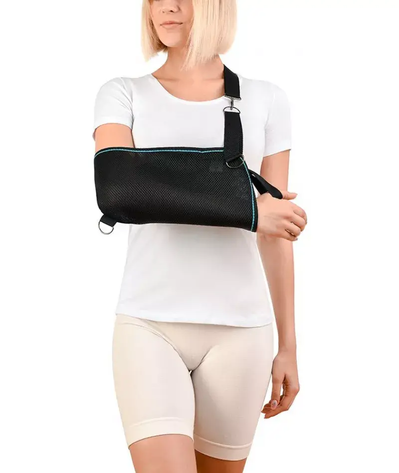 Пристосування ортопедичне для руки арт. РП-6 виготовлено з міцного матеріалу з високим вмістом бавовни та забезпечено регульованим ременем на шию і надпліччя. При носінні бандажу верхня кінцівка надійно зафіксована і постійно знаходиться на опорі. Навантаження, пов'язане з вагою кінцівки перерозподілена на здорову сторону. Висота і щільність прилягання до тіла регулюється