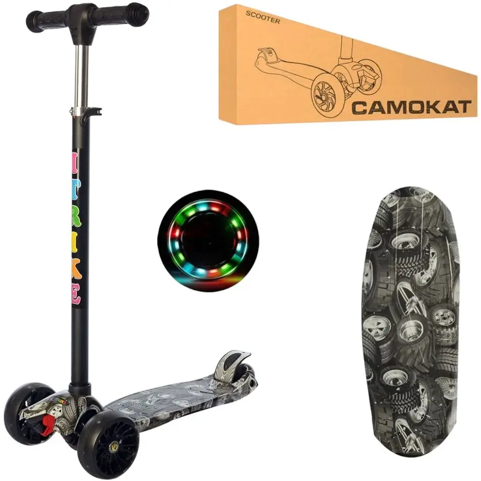 Даний самокат збалансований, має строгий дизайн, а також має легку вагу та витримує навантаження до 80 кг. Особливості: Дека, гарнітура, кермо, все відмінно підготовлено для найскладніших трюків фрістайл у скейт-парку або на вулицях; Кермо: матеріал - алюмінієвий сплав, 4х болтовий затискач, висота керма – 85 см. Дека: матеріал – алюмінієвий сплав, довжина деки – 48.5 см. Колеса 100 мм, Hi-rebound 82A Підшипники – АВЕС 7 У комплект входить дві пеги
