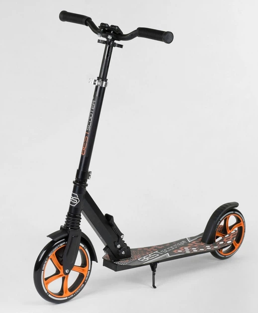Самокат двоколісний Best Scooter 750 з ручним гальмом PU колеса. Black and Orange (88917)