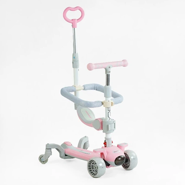 Триколісний самокат з ручкою 5в1 "Skyper" Беговел Каталка музика, підсвічування платформи, бампер, J-07216, рожевий