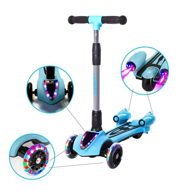 Самокат 5в1 Best Scooter з додатковими колесами підсвічуванням і батьківською ручкою Бірюзовий