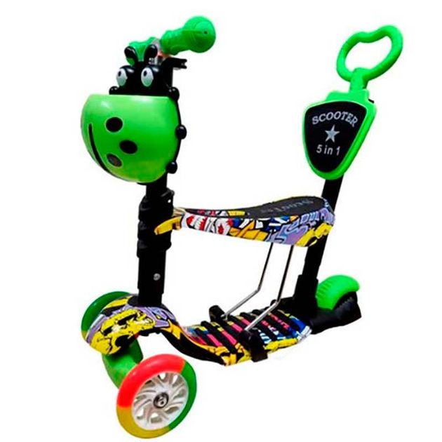 Дитячий самокат Bambi з батьківською ручкою 4 колеса PU 5 в 1 Green SC20482