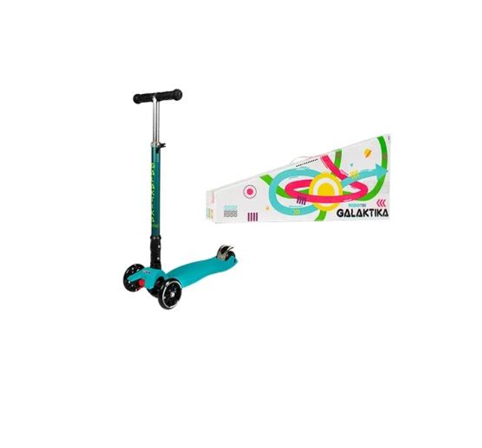 Самокат дитячий триколісний Galaktika складний з підсвічуванням коліс Смарагдовий