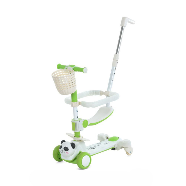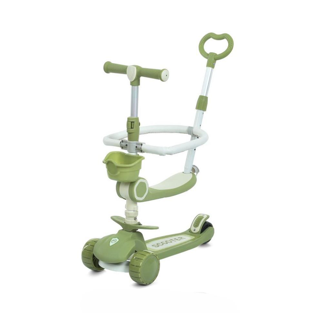 Дитячий триколісний самокат 5 в 1 Scooter Smart N-388 Зелений з батьківською ручкою, захисним бортиком, музикою та підсвічув