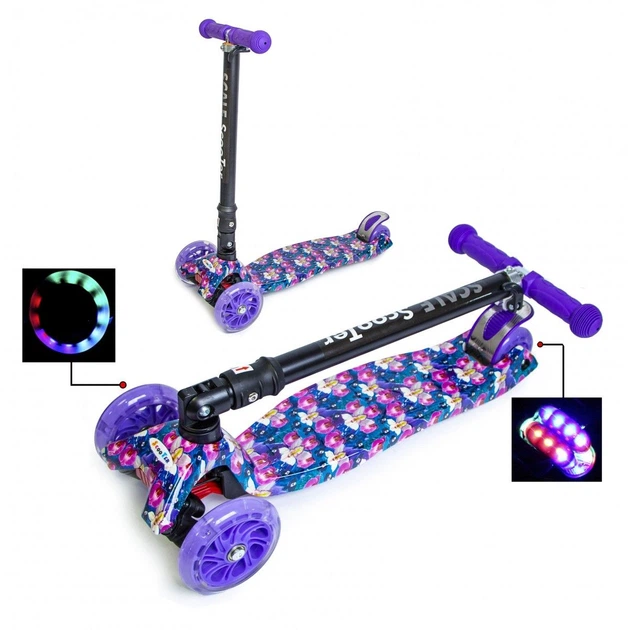 Дитячий самокат MAXI. Орхідея. Складна ручка