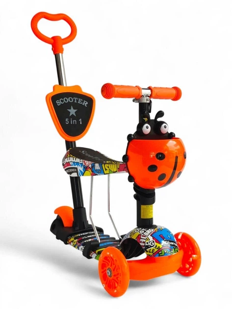 Дитячий самокат сонечко 3в 1 з сидінням та батьківською ручкою Scooter 0336 від 1 року Orange
