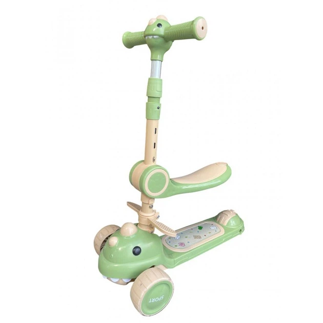 Дитячий міський самокат Adbor 616 Dino 5в1. Триколісний самокат, колір зелений