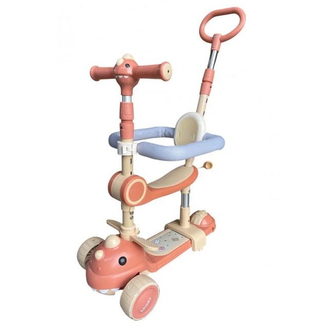 Дитячий міський самокат Adbor 616 Dino 5в1. Триколісний самокат, колір рожевий