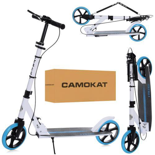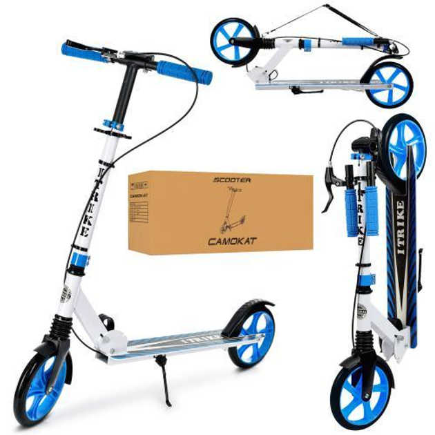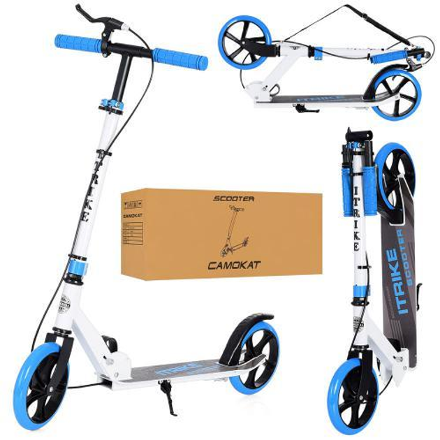 Самокат iTrike двоколісний з ручним гальмом амортизатор Білий з блакитним