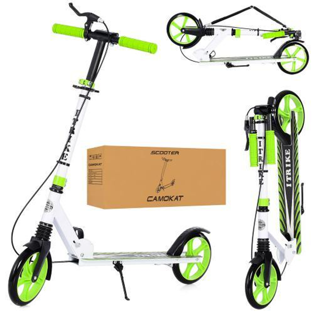 Самокат iTrike двоколісний з ручним гальмом та амортизаторами Зелений