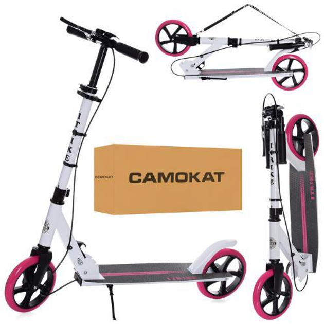 Самокат iTrike двоколісний з ручним гальмом Білий з рожевим