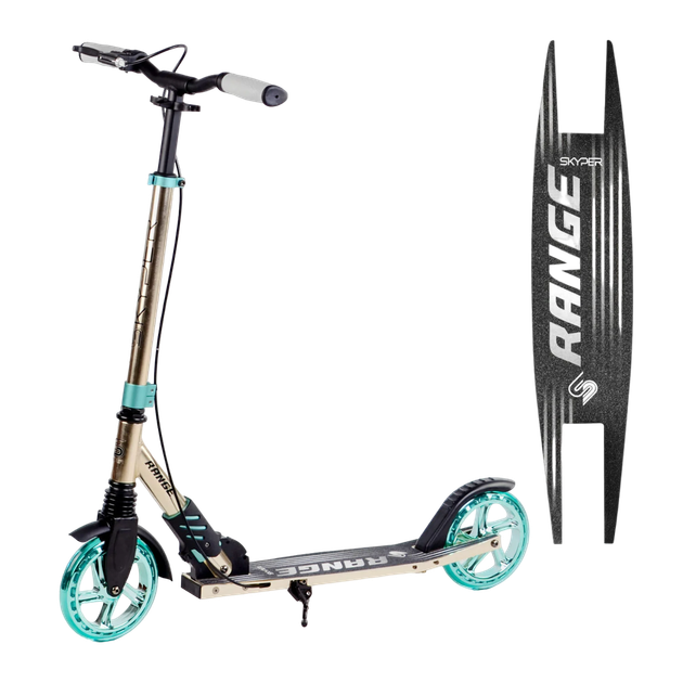 Самокат двоколісний з великими колесами і ручним гальмом\ Skyper Range Чорний з бірюзовим