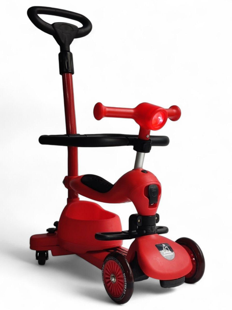 Самокат біговів дитячий триколісний Scooters Basket 619 з бортиком та батьківською ручкою Red-Black