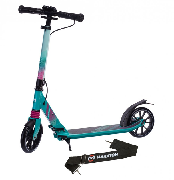 Самокат Maraton Бірюзовий з амортизаторами та дисковим гальмом