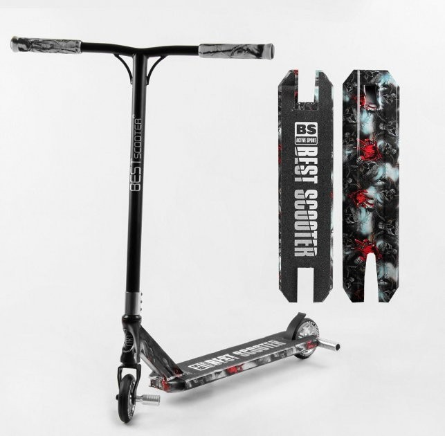 Самокат трюковый Best Scooter Череп HIC-система, Пеги , алюминиевый диск и дека с Принтом , колёса d=110мм, ширина руля - 60